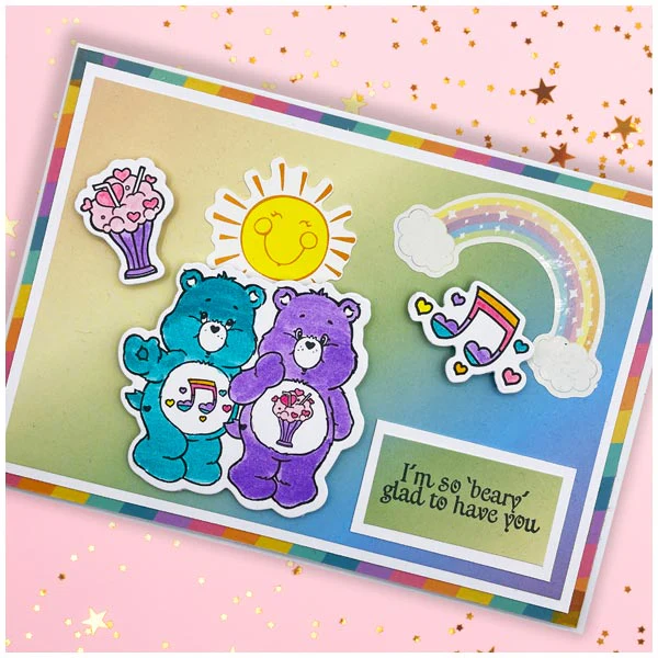 Care Bears Die and A5 Stamp Set Bear Hugs | Rainbows & Clouds
